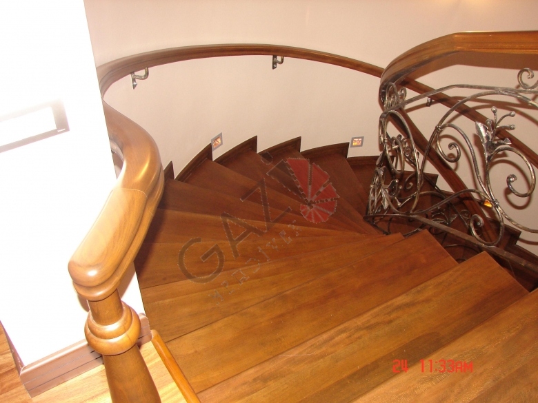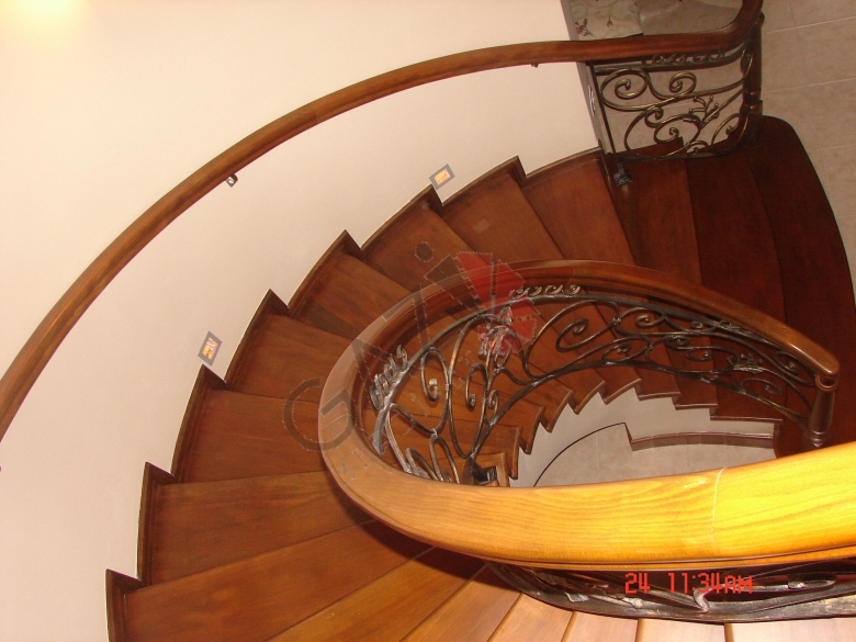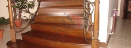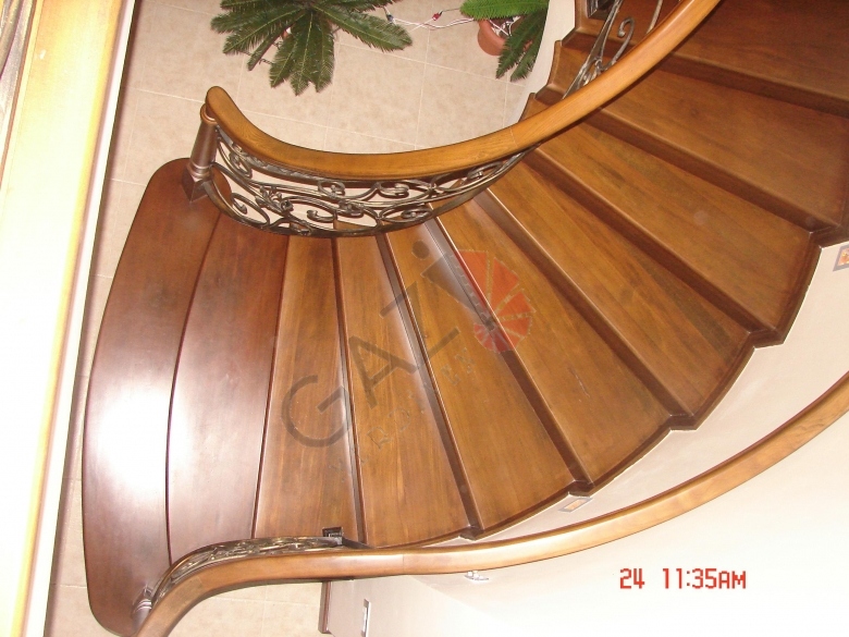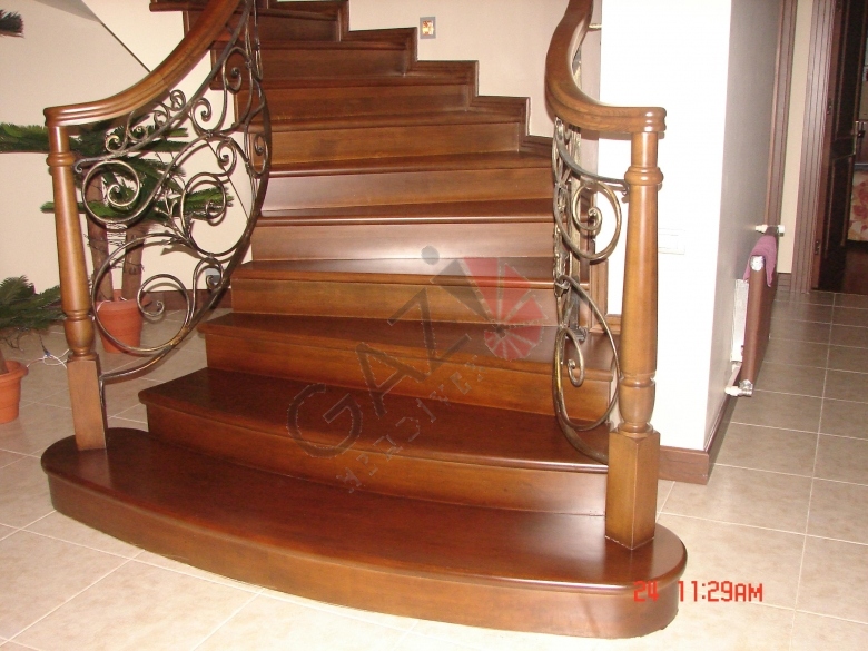 Kayın Basamak (40 mm) Ceviz renk uygulaması,Ferforje korkuluk,Ahşap Küpeşte Mersin/Mezitli