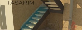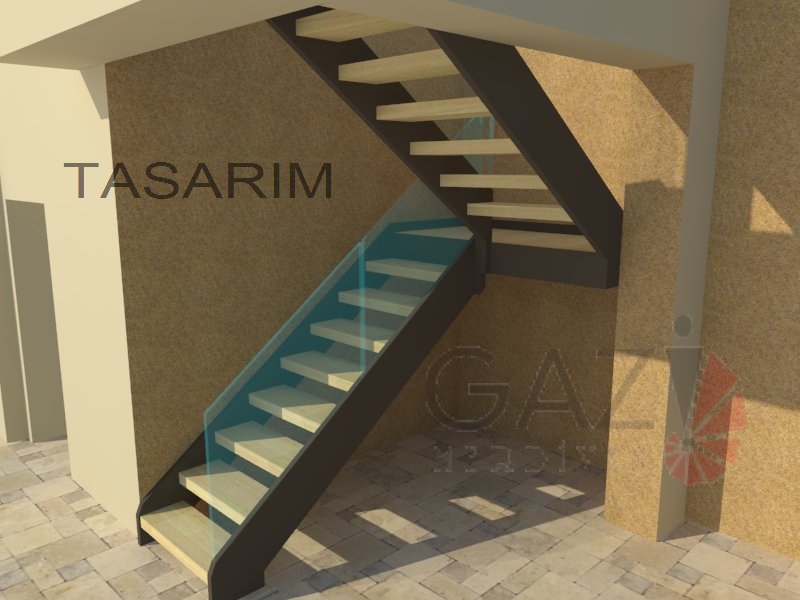 Ceviz renk kayın,Yarım Rıht (40 mm) basamak,Gri renk omurga,ahşap Aluminyum korkuluk. Fenerbahçe/İSTANBUL